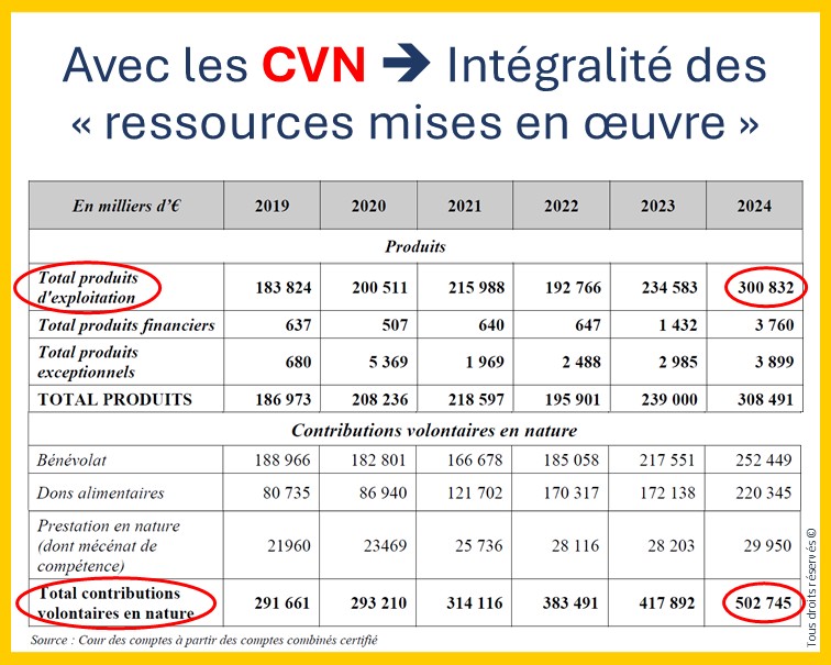 👉 Et pour cause : les CVN y sont supérieures aux produits d’exploitation ! Conformément au règlement ANC 2018-06, la comptabilisation des CVN permet à l’entité de présenter l’ensemble de ses activités et moyens :